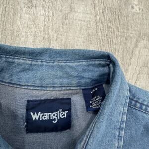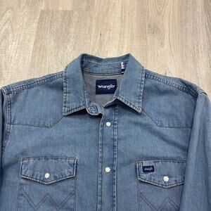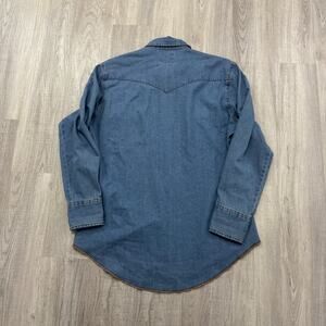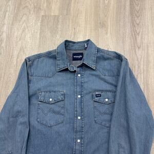 Vintage Wrangler Denim Pearl Snap Button Shirt Men's Large Blue Western Cowboy