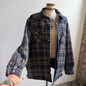 Vintage Wrangler Flannel Jacket Plaid Thermal Shacket Grunge Gorpcore Coat Large