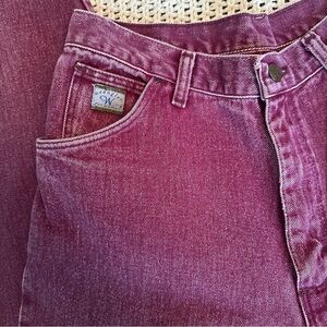 Circa 1980’s Vintage Wrangler High Rise Mom Tapered Leg Acid Wash Berry Purple Jeans Size Tag 12x29. Measure 28” at high rise waist