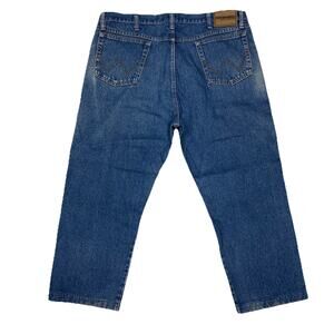 A durable and comfortable pair of Wrangler jeans, perfect for everyday wear or work.