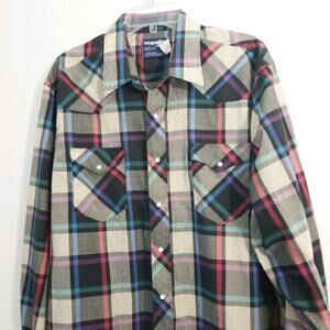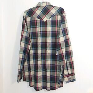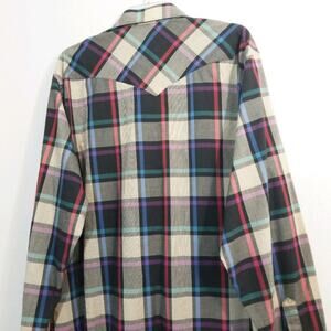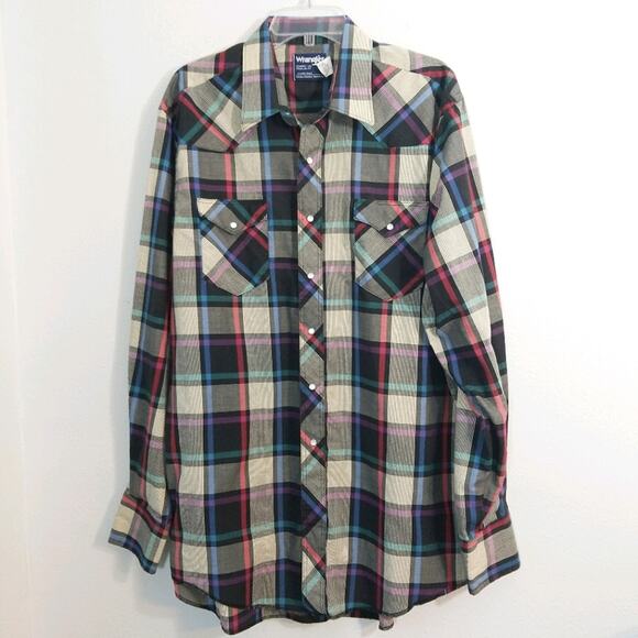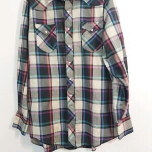 Vintage Wrangler extra long tail pearl snap cowboy cut western shirt. Made in the USA
