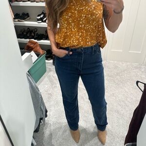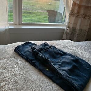 Vintage Wrangler MS100NV denim jeans, dark wash boot cut/straight leg distressed