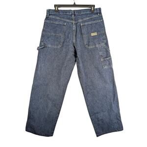 Vintage Wrangler Mens 33x29 Blue Carpenter Denim Jeans Workwear Wide Leg