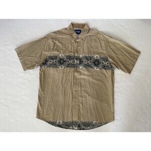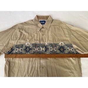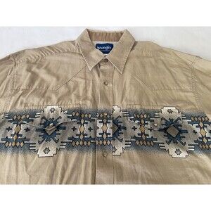 Vintage Wrangler Men's XL Beige Short Sleeve Pearl Snap Aztec Southwest Shirt