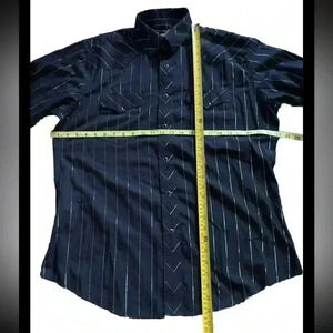 Vintage Wrangler Men's western button up shirt snap button L black silver stripe