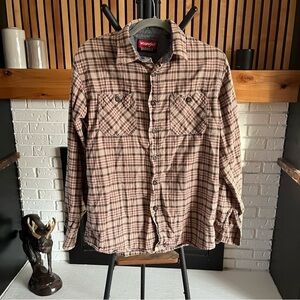 Vintage Wrangler Originals Shirt - Men’s Medium, Tan Brown & Red Plaid