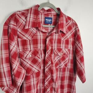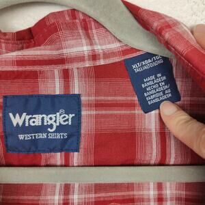 Vintage Wrangler Pearl Snap Button Shirt Men XLT Red Plaid Check Western Country