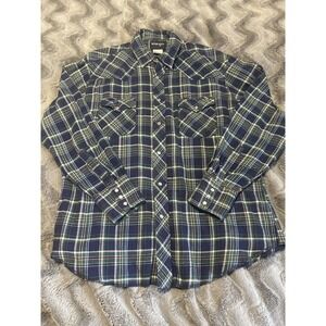 Vintage Wrangler Pearl Snap Long-Sleeve Western Cowboy Flannel Mens Large