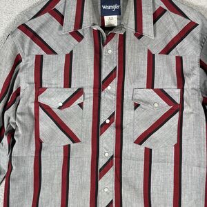Vintage Wrangler Pearl Snap Shirt Men’s Size 16-34 Stripes Grey Red Cowboy Cut