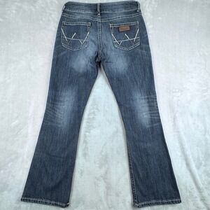 Keywords: Wrangler jeans, bootcut jeans, dark wash jeans, denim jeans, womens jeans, mid rise jeans, casual jeans, western style, premium patch, size 9/10, womenswear, classic jeans, jeans