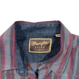 Vintage Wrangler Retro Men's XL Maroon Striped Pearl Snap Button Down Shirt