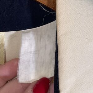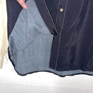 Fabric: Feels like silky polyester or rayon blend (tag worn)