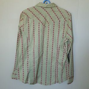 Vintage Wrangler grreen red pink white long Sleeves Shirt size L.Lovely pattern. Pre-owned good condition.
