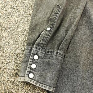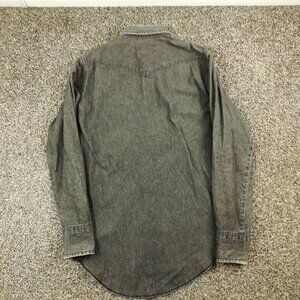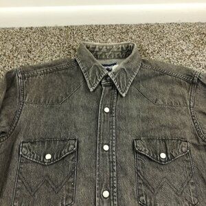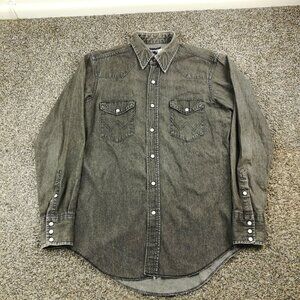 Vintage Wrangler Shirt Denim Western Pearl Snap L/S Long Tails Black Mens 15.5