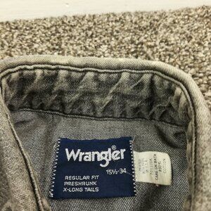 Vintage Wrangler Shirt Denim Western Pearl Snap L/S X-Long Tails Black Mens 15.5
