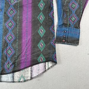 Vintage Wrangler Shirt Men’s Large Aztec Western Snap Brushpopper Rodeo Cowboy