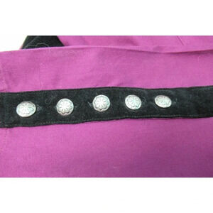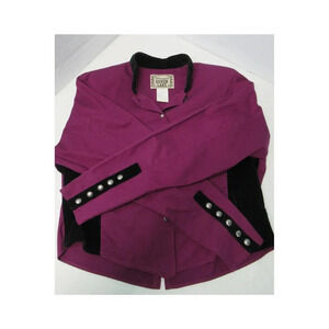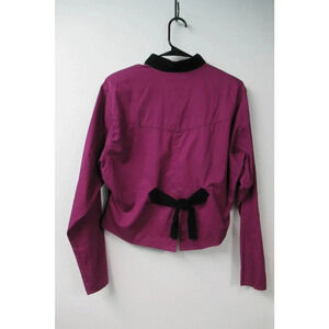 Vintage Wrangler Silver Lake Velvet Cotton Button Down Blouse Sz XL Plum Black. Long sleeve, short waisted button-down blouse with silver buttons, shoulder pads and a beautiful velvet bow tie in the back. Excellent pre-owned condition! Color is more of a plum, purple red.