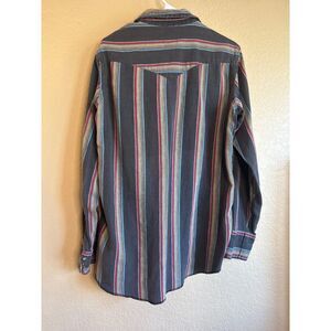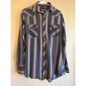 Vintage Wrangler Striped Western Shirt with Pearl Snaps Mens Large Tall Grey in good used condition.