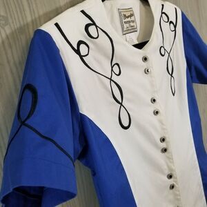 Channel full cowgirl energy in this true vintage Wrangler short sleeve Western blouse featuring: