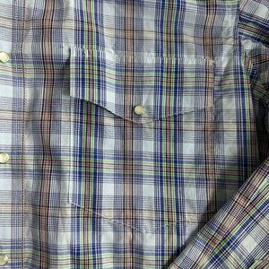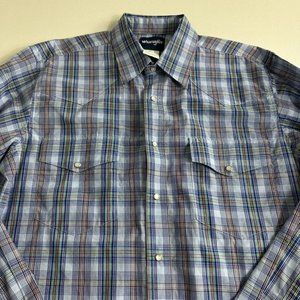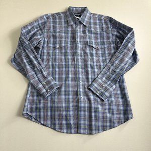 Vintage Wrangler Western Brushpopper Button Up Shirt Pearl Snap Rodeo Mens Large