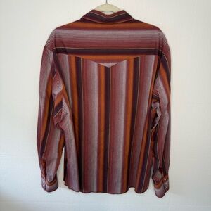 Western-style shirt with bold stripes. Features pointed collar and chest pockets. Perfect for casual wear.