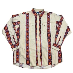 Vintage Wrangler Western Cowboy Shirt Long Sleeve decorative Button Down Rare