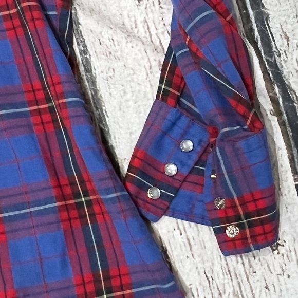 Vintage Wrangler Western Pearl Snap Rockabilly Plaid Button Down Shirt