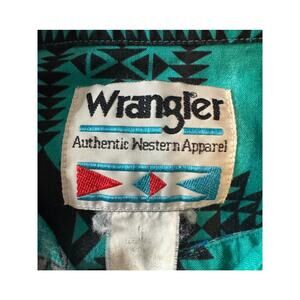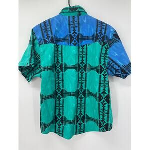 Vintage Wrangler Western Shirt Men's L Aztec Blue Green Button Up Short Sleeve
