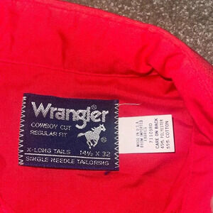 Vintage Wrangler Western Shirt Pearl Snap Buttons - size 14.5 x 32 Long Tail FF
