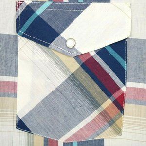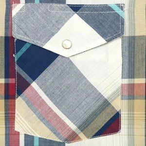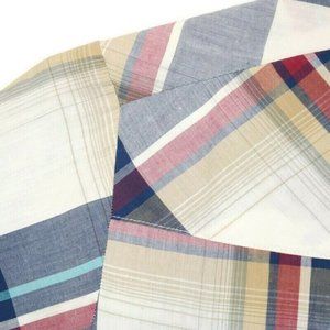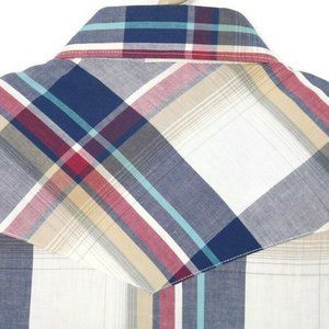 Vintage Wrangler Western Shirt White Blue Red Tan Plaid Pearl Snap Short Sleeve