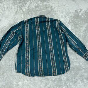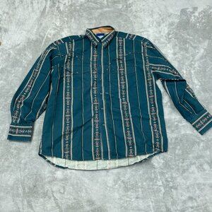 Vintage Wrangler Western Shirt XXL Teal Striped Long Sleeve Snap Button 6324