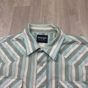 Vintage Wrangler Western Snap Button Shirt Men's 2XL Teal Striped 90s Cowboy