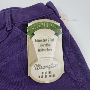This pair of vintage Wrangler straight leg jeans is perfect for women who love retro and stylish fashion. The high-rise design adds a touch of elegance and sophistication to any outfit, while the beautiful purple color makes it stand out from the rest. Measuring at 32 inches, the inseam is perfect for those who prefer a longer length.
