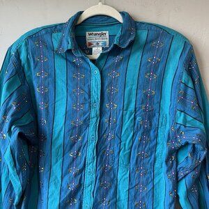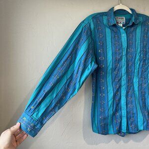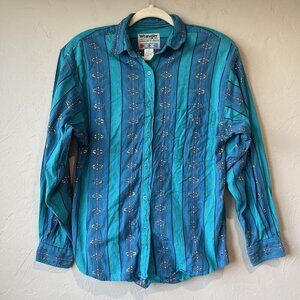 Vintage Wrangler Women’s Shirt Button Aztec Blue cowgirl Cowboy Western Rodeo M
