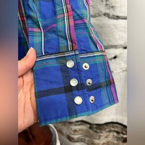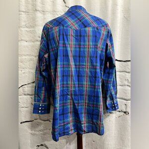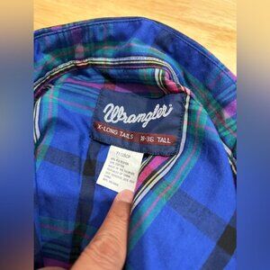 Vintage Wrangler X-Long TailsTall Blue Green Pink Pearl Snap Western Cowboy