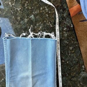 These jeans have been cut. Wear them as is or cut to shorts length. Nice light wash. A few small mark on legs and a bit of pilling. Otherwise in great shape for vintage jeans. Tons of wear left.
