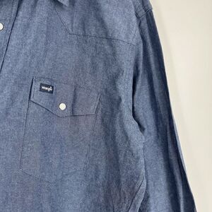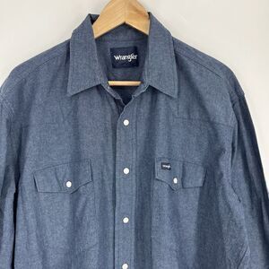 Vintage Wrangler Shirt Size XL Mens Blue Chambray Pearl Snap Cowboy Rancher 90s