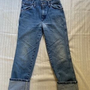 There is no amount of modern distressing that captures the amazing wash of vintage denim. Vintage men's wranglers- I have a pair and they fit my lady bod nicely. So cute worn slouchy with heeled boots. Can you feel my love for vintage denim??