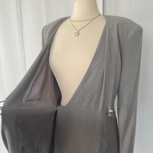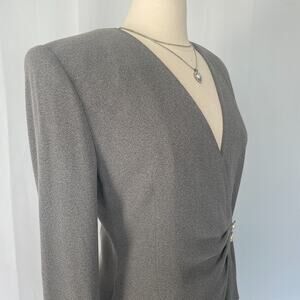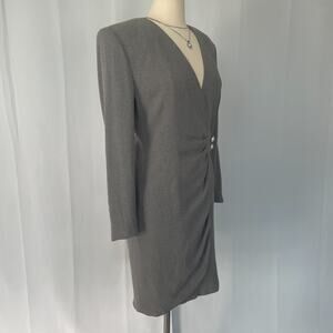 Vintage Wrap Dress Size 10 Gray Solid Longe Sleeve Pencil Office Secretary 80s