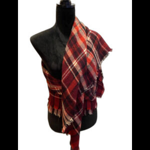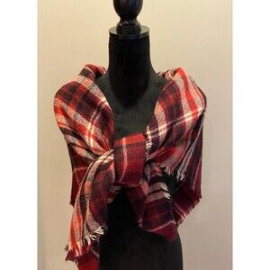 Vintage Red Plaid Oversized Scarf Wrap