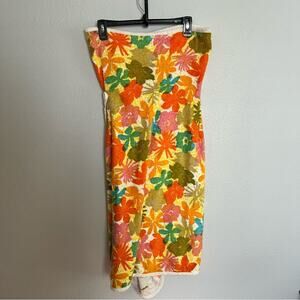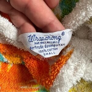 Vintage Wraparong Midcentury Modern Yellow Orange Floral Terry Towel Dress sz S