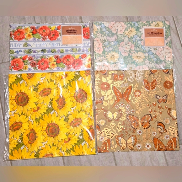 Vintage Wrapping Paper Lot of 4 Gift Wrap Hallmark 8 Sheets 70s All Occasions