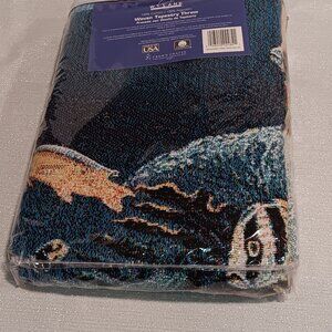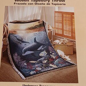 Vintage Wyland Studios Woven Tapestry Throw Blanket Dolphins Tropical Fish USA