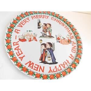 Vintage Wynne Novelty Tray Merry Christmas Happy New Year Made in Hong Kong