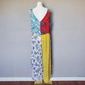 Vintage X Sacred Threads Patchwork Mixed-Print Pull-On Wide Leg Boho Jumpsuit