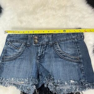 Vintage X2 Shorts Y2K Low Rise Micro Mini Leopard Patch Fringe Denim Pink Trim