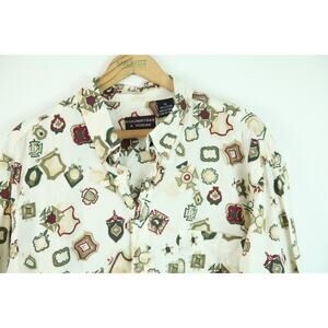 Vintage XL Dad Shirt 90s Oversize Medallion Allover Print Preppy Nautical Skater