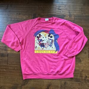 Vintage XL Minnie Mouse Chocolate Disney Shirt Sweatshirt Crewneck Pink Made USA