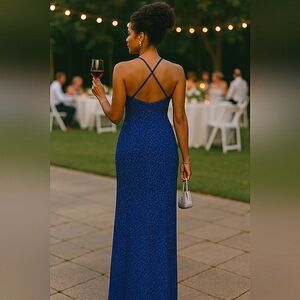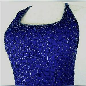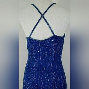 Elegant New With Tags Vintage Y2K 100% Silk Stunningly Gorgeous Royal Midnight Blue Sequin Embroidered Stunning Sparkling Formal Events Strappy Ball Gown Wedding Vacation Mother Of The Bride Spring Summer Vacation Cruise Festival Packable Comfortable Fairygoth Castlecore Quinceañera