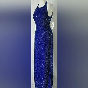 Vintage XL Sexy Sequin Sparkling Formal Silk Elegant Ball Gown Midnight Blue